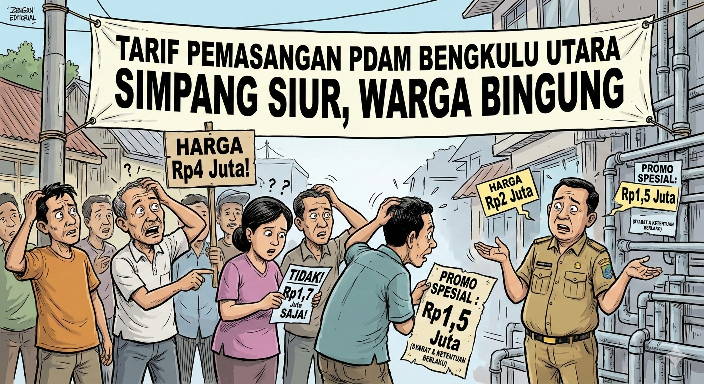 Bengkulu Hits — Dugaan ketidaksamaan tarif pemasangan sambungan baru PDAM di Kabupaten Bengkulu Utara kian memantik keresahan warga. Biaya pemasangan yang seharusnya mengacu pada standar resmi justru diduga berubah-ubah, bahkan disebut mencapai jutaan rupiah, tanpa penjelasan transparan. Fakta ini mencuat pada Jumat (30/1/2026).